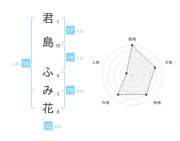 君島 ふみ花さんを姓名の画数から五運を鑑定