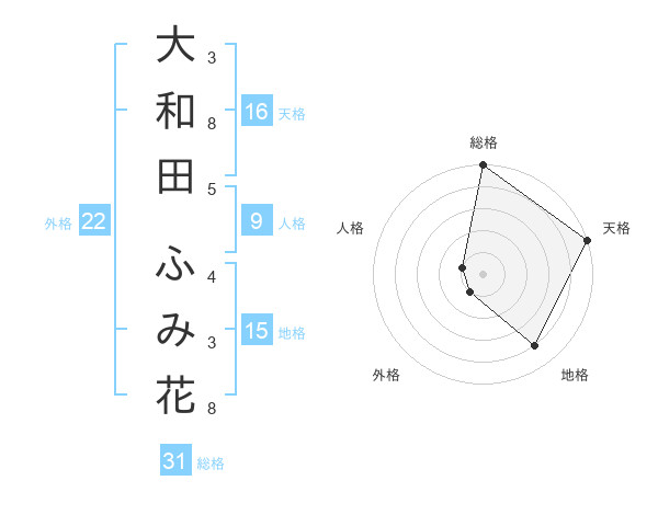 大和田 ふみ花さんの天格は16画の5点!