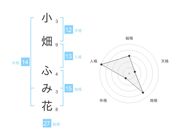 小畑 ふみ花さんを姓名の画数から五運を鑑定
