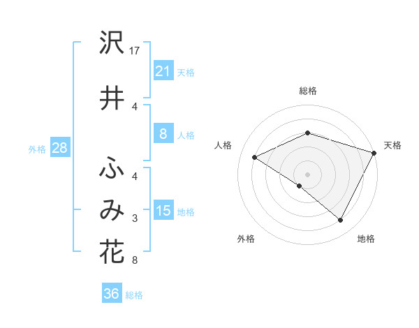 沢井 ふみ花さんを姓名の画数から五運を鑑定
