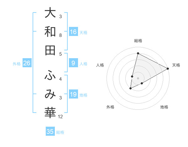 大和田 ふみ華さんを姓名の画数から五運を鑑定