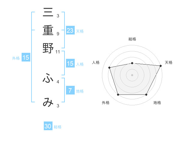 三重野 ふみさんの天格は23画の5点!