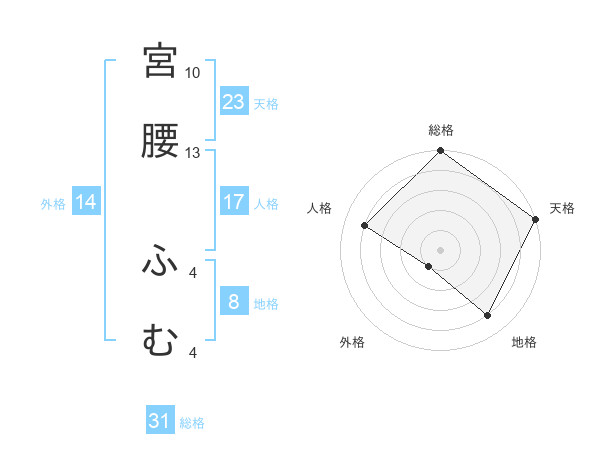 宮腰 ふむさんを姓名の画数から五運を鑑定