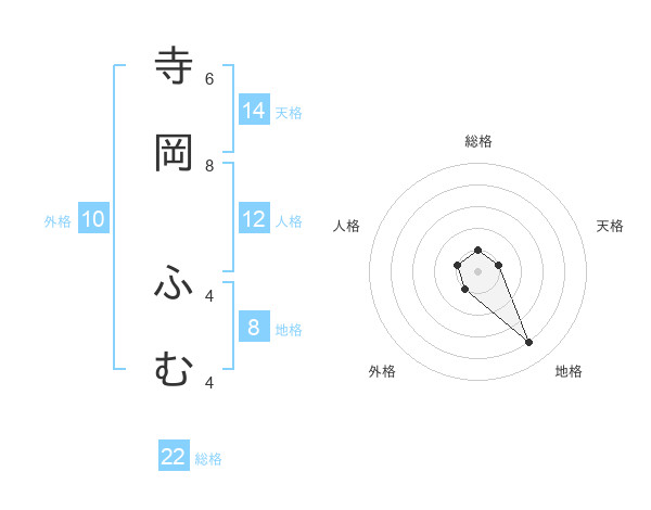 寺岡 ふむさんの総格は22画の1点!
