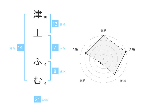 津上 ふむさんの天格は13画の5点!