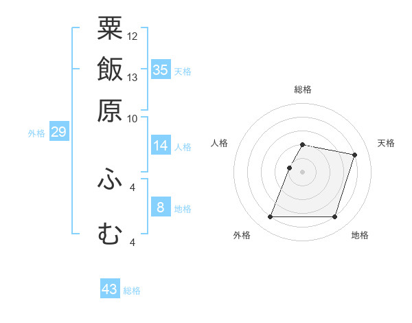粟飯原 ふむさんを姓名の画数から五運を鑑定