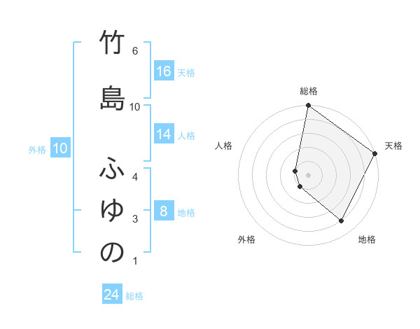 竹島 ふゆのさんの天格は16画の5点!