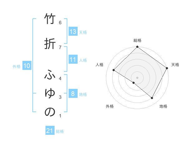 竹折 ふゆのさんの天格は13画の5点!