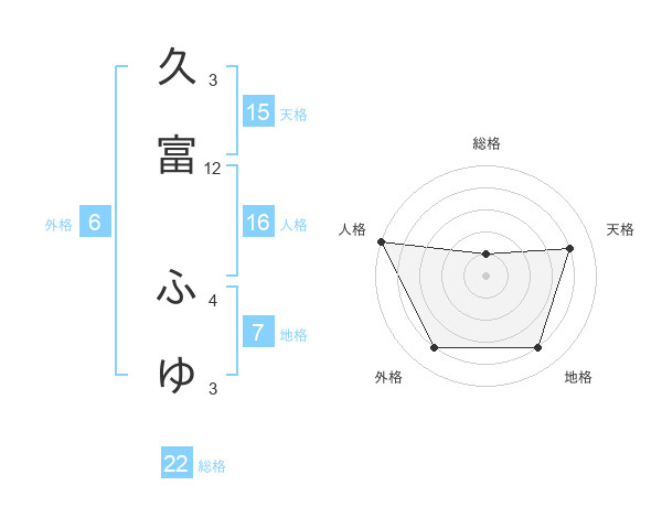 久富 ふゆさんを姓名の画数から五運を鑑定