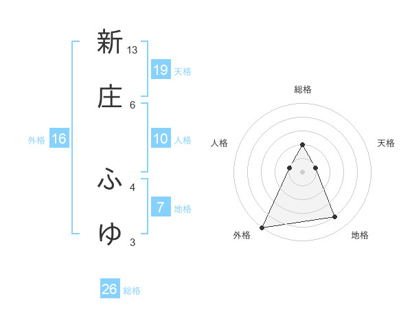 新庄 ふゆさんの総格は26画の2点!
