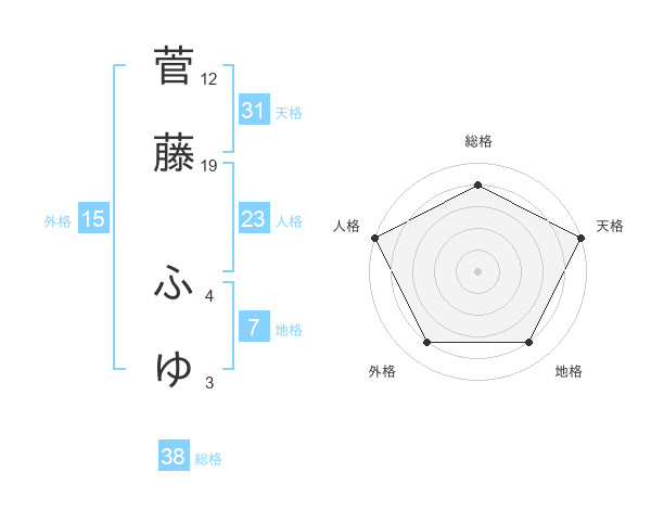 菅藤 ふゆさんの総格は38画の4点!