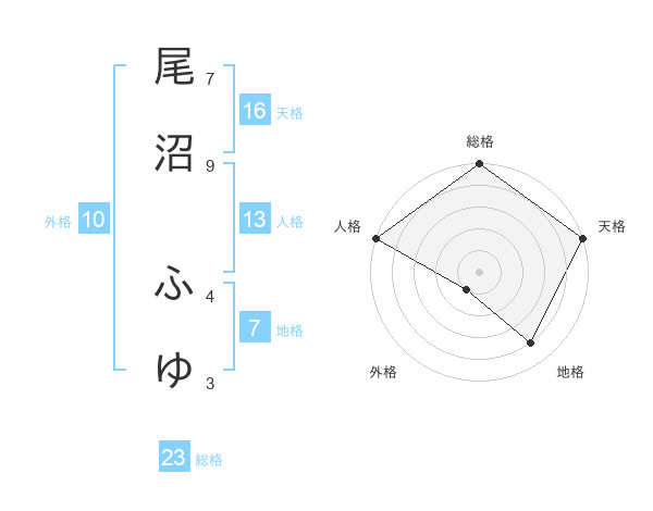 尾沼 ふゆさんを姓名の画数から五運を鑑定