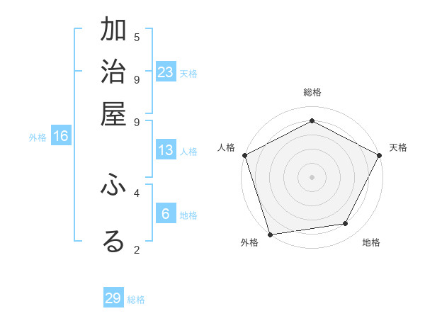 加治屋 ふるさんを姓名の画数から五運を鑑定