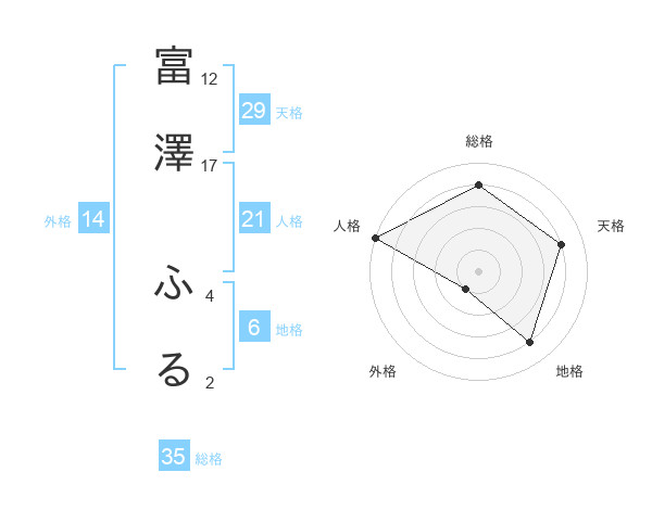 富澤 ふるさんを姓名の画数から五運を鑑定