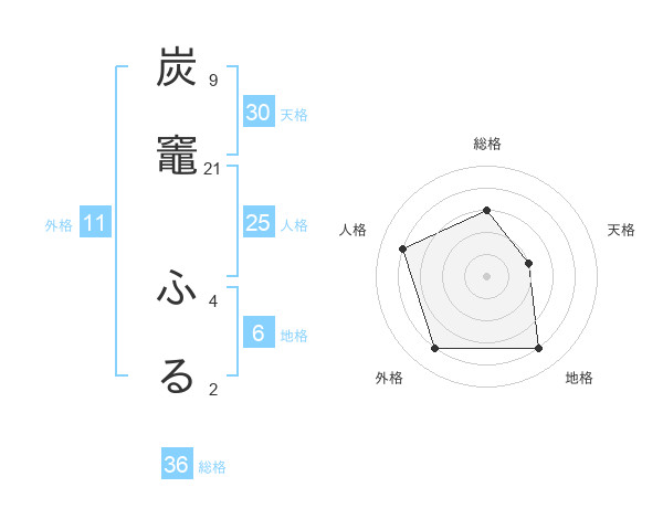 炭竈 ふるさんを姓名の画数から五運を鑑定