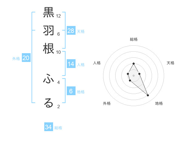 黒羽根 ふるさんを姓名の画数から五運を鑑定