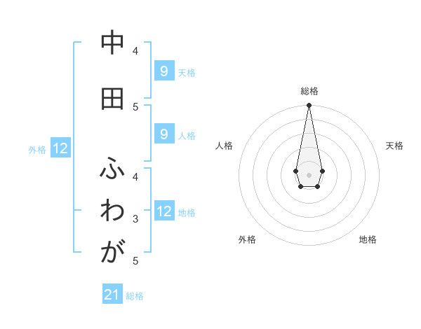 中田 ふわがさんを姓名の画数から五運を鑑定