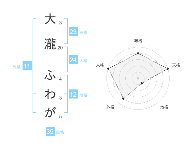大瀧 ふわがさんを姓名の画数から五運を鑑定