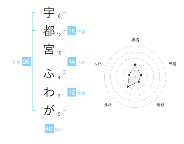 宇都宮 ふわがさんを姓名の画数から五運を鑑定