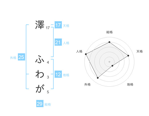 澤 ふわがさんの天格は17画の4点!