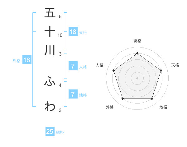 五十川 ふわさんの総格は25画の4点!