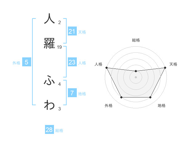 人羅 ふわさんを姓名の画数から五運を鑑定