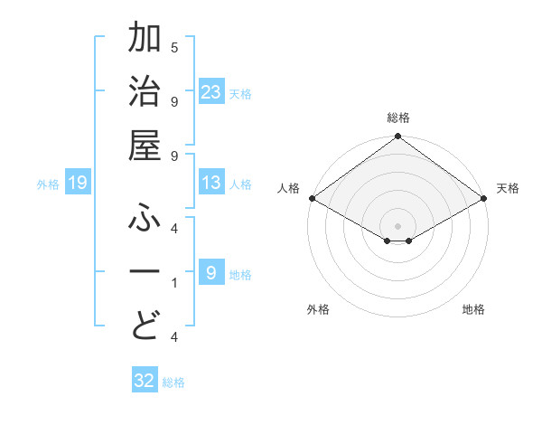 加治屋 ふーどさんを姓名の画数から五運を鑑定