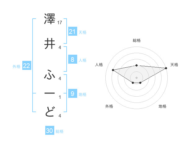 澤井 ふーどさんを姓名の画数から五運を鑑定