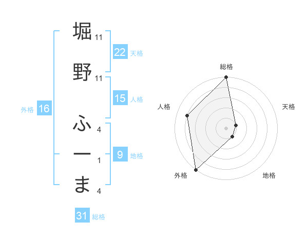 堀野 ふーまさんの外格は16画の5点!