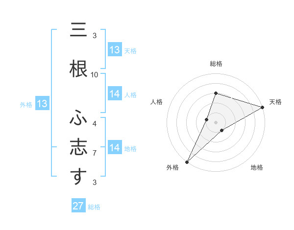 三根 ふ志すさんを姓名の画数から五運を鑑定