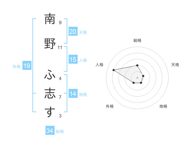 南野 ふ志すさんの総格は34画の2点!