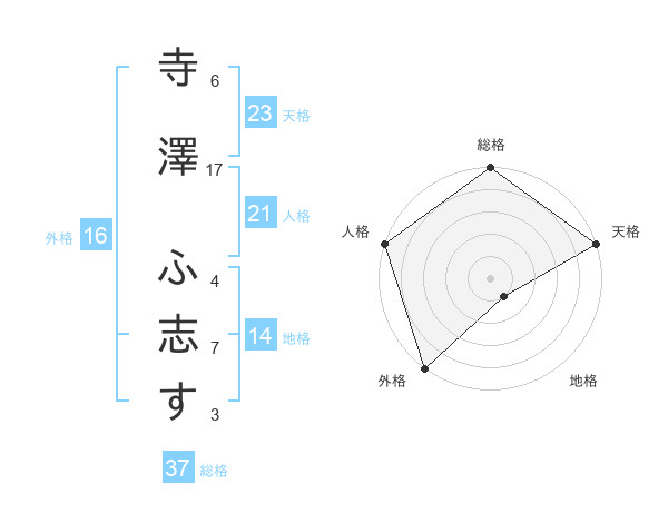 寺澤 ふ志すさんを姓名の画数から五運を鑑定