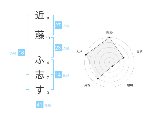 近藤 ふ志すさんの総格は41画の5点!