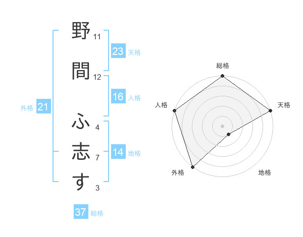 野間 ふ志すさんを姓名の画数から五運を鑑定