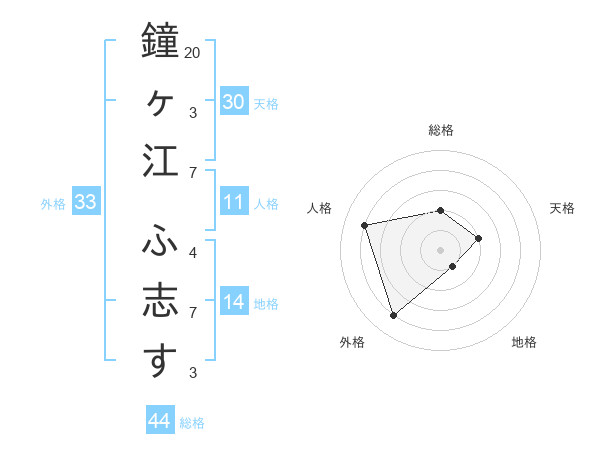 鐘ヶ江 ふ志すさんの総格は44画の2点!
