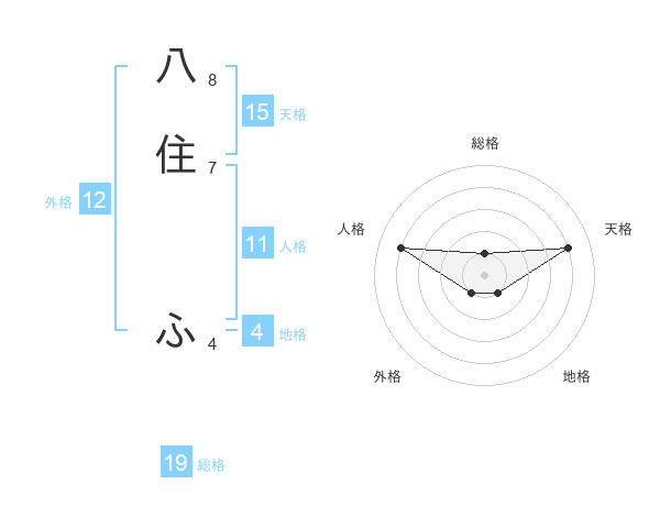 八住 ふさんの総格は19画の1点!