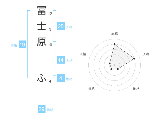 冨士原 ふさんを姓名の画数から五運を鑑定