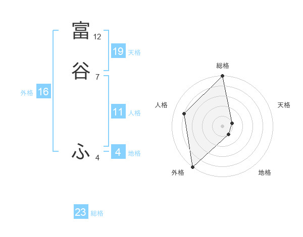 富谷 ふさんの天格は19画の1点!