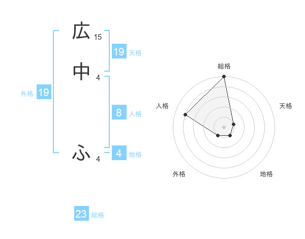広中 ふさんの天格は19画の1点!