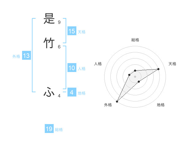 是竹 ふさんの天格は15画の4点!