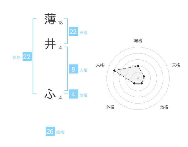 薄井 ふさんの総格は26画の2点!