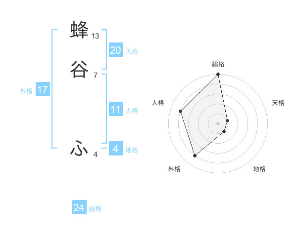 蜂谷 ふさんの総格は24画の5点!