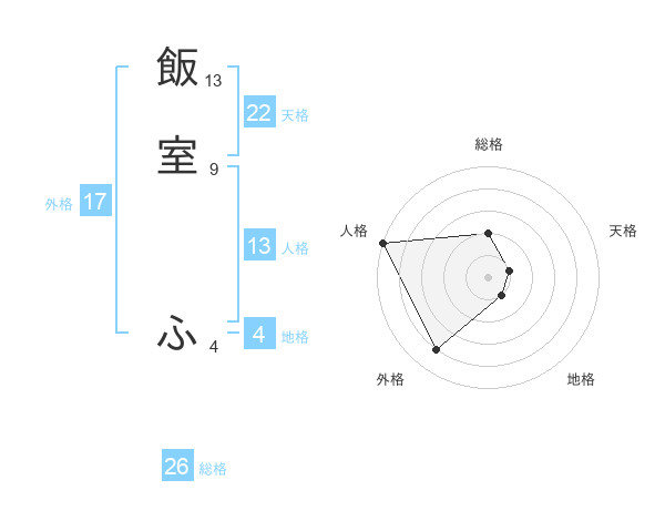 飯室 ふさんの外格は17画の4点!