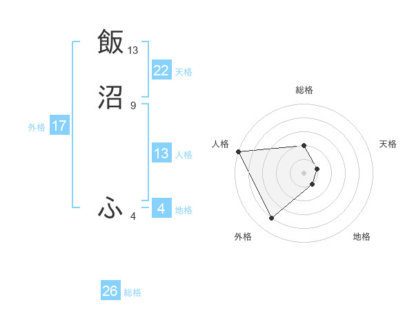 飯沼 ふさんを姓名の画数から五運を鑑定