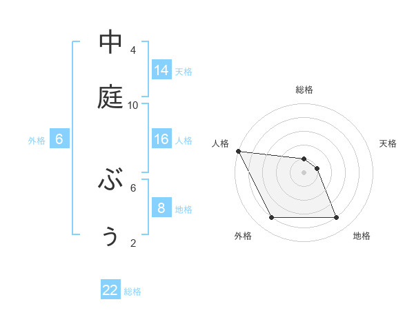 中庭 ぶぅさんの総格は22画の1点!