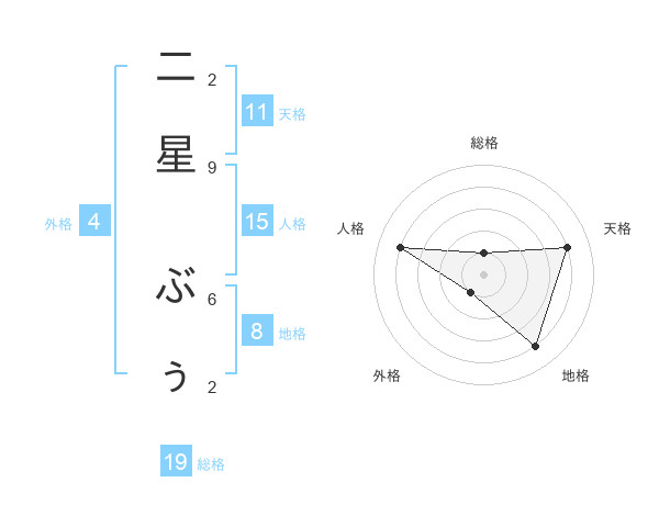 二星 ぶぅさんの総格は19画の1点!
