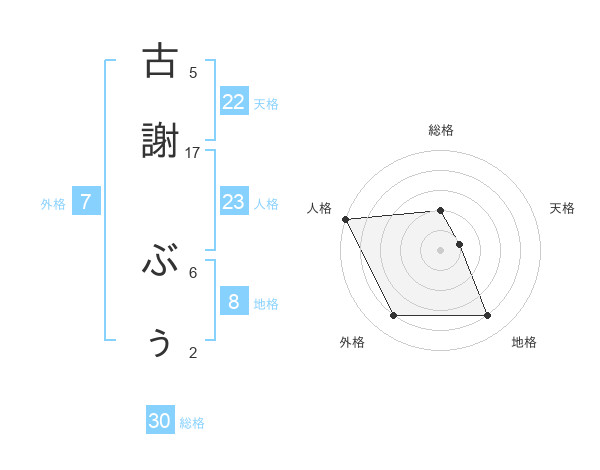 古謝 ぶぅさんを姓名の画数から五運を鑑定