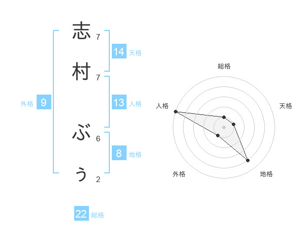 志村 ぶぅさんの総格は22画の1点!