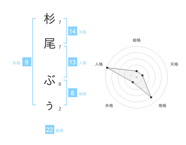 杉尾 ぶぅさんを姓名の画数から五運を鑑定