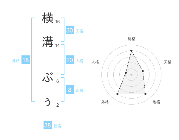 横溝 ぶぅさんの総格は38画の4点!